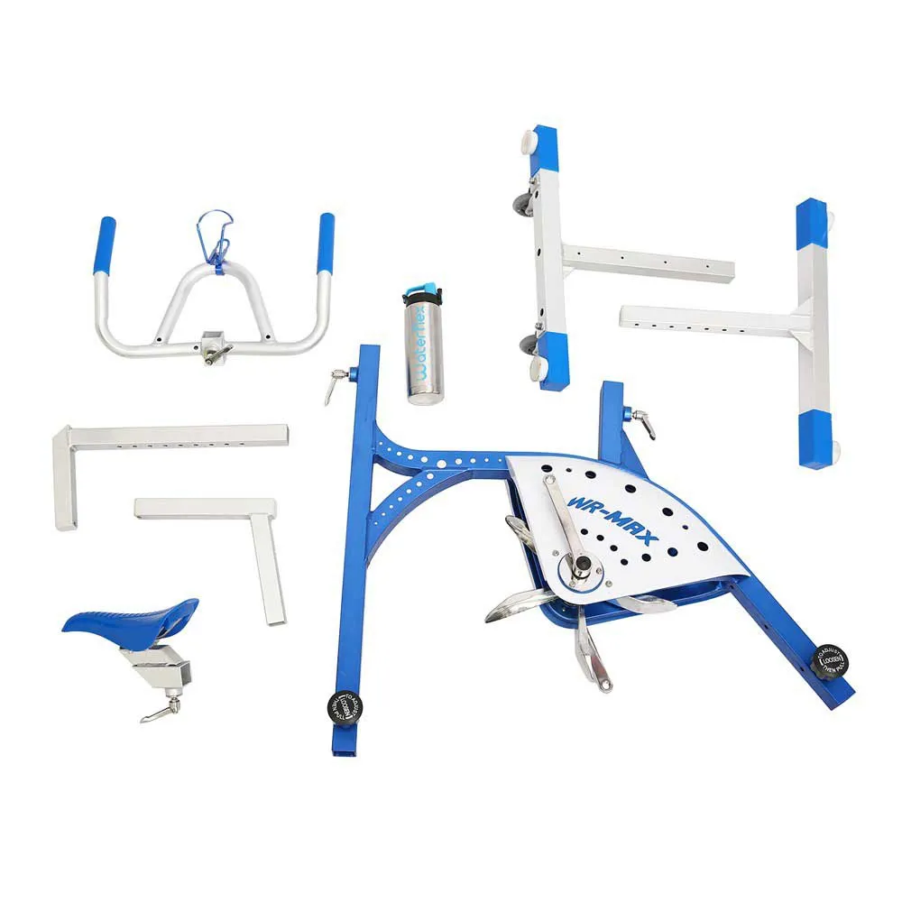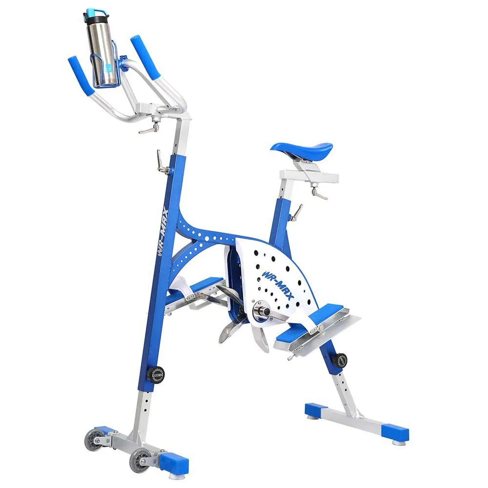 La struttura in alluminio WR Max conferisce un´estrema leggerezza a questo aquabike che pesa solo 15,9 chilogrammi. Un vantaggio importante quando si tratta di spostarlo e recuperarlo dalla piscina. Due ruote ai piedi anteriori della bici rendono più facile lo spostamento del WR MAX e quattro ventose alla base dell´aquabike lo fissano sul fondo della piscina durante l´uso. Gli accessori sono realizzati in silicone per evitare di segnare il pavimento.