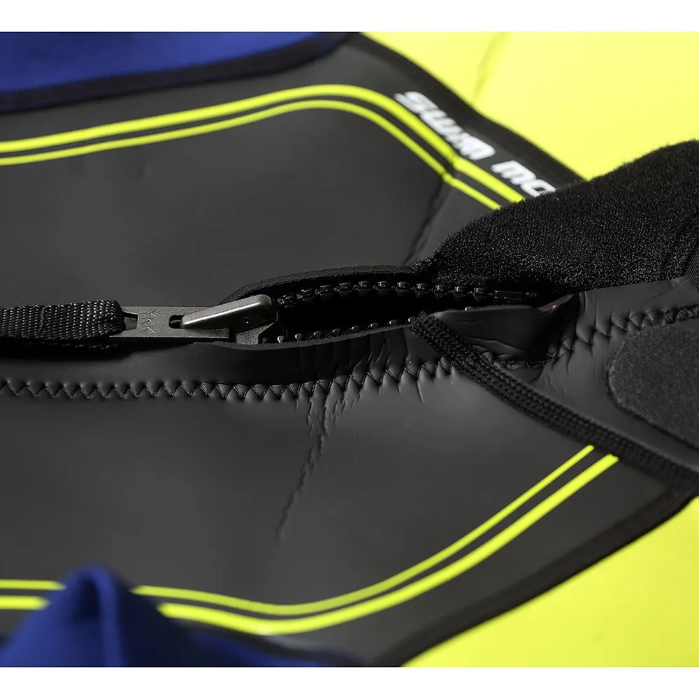 Pannelli sulle spalle di 2 mm di colore chiaro, elasticizzati per flessibilità e visibilità e tessuto Speedflo sul petto anteriore per ridurre la resistenza attraverso ;acqua.