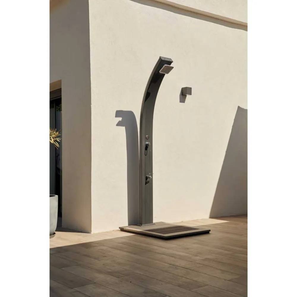De FORMIDRA Spring 30L solardouche in Antraciet is een stijlvolle en handige toevoeging aan elk buitenzwembad. Deze solardouche is ontworpen om warm water te leveren om af te spoelen voor of na het zwemmen, met behulp van de kracht van de zon om water te verwarmen in de tank van 30 liter. De douche heeft een strakke antracietkleur die elke decoratie van het zwembad zal aanvullen.