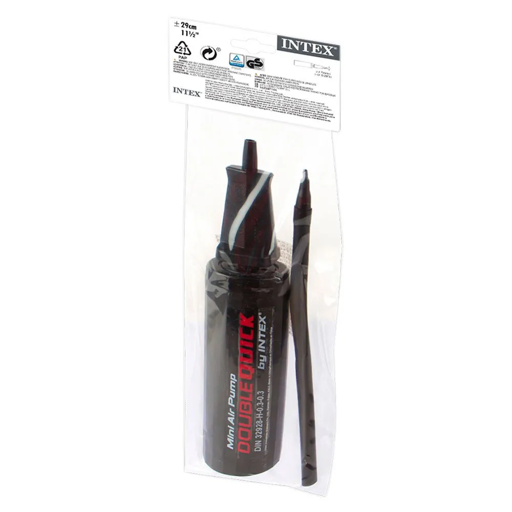 Deze kleine, handzame INTEX Double Quick pomp helpt je om luchtbedden, drijvers en zelfs ballonnen sneller en gemakkelijker op te blazen.