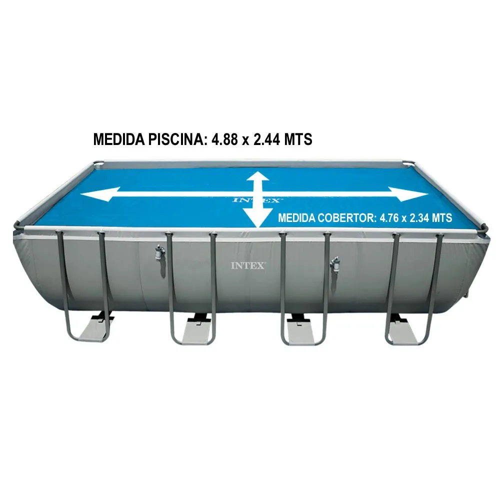 Intex zonnekap voor rechthoekige zwembaden 488x244 cm, afdekafmetingen: 476x234 cm. & Nbsp; Intex zonnekap gemaakt van polyethyleen, met afgesloten luchtbellen met een dikte van 160 micron. Vermindert de waterverdamping met ongeveer 95% en is perfect voor het handhaven van de watertemperatuur in het zwembad & nbsp;
