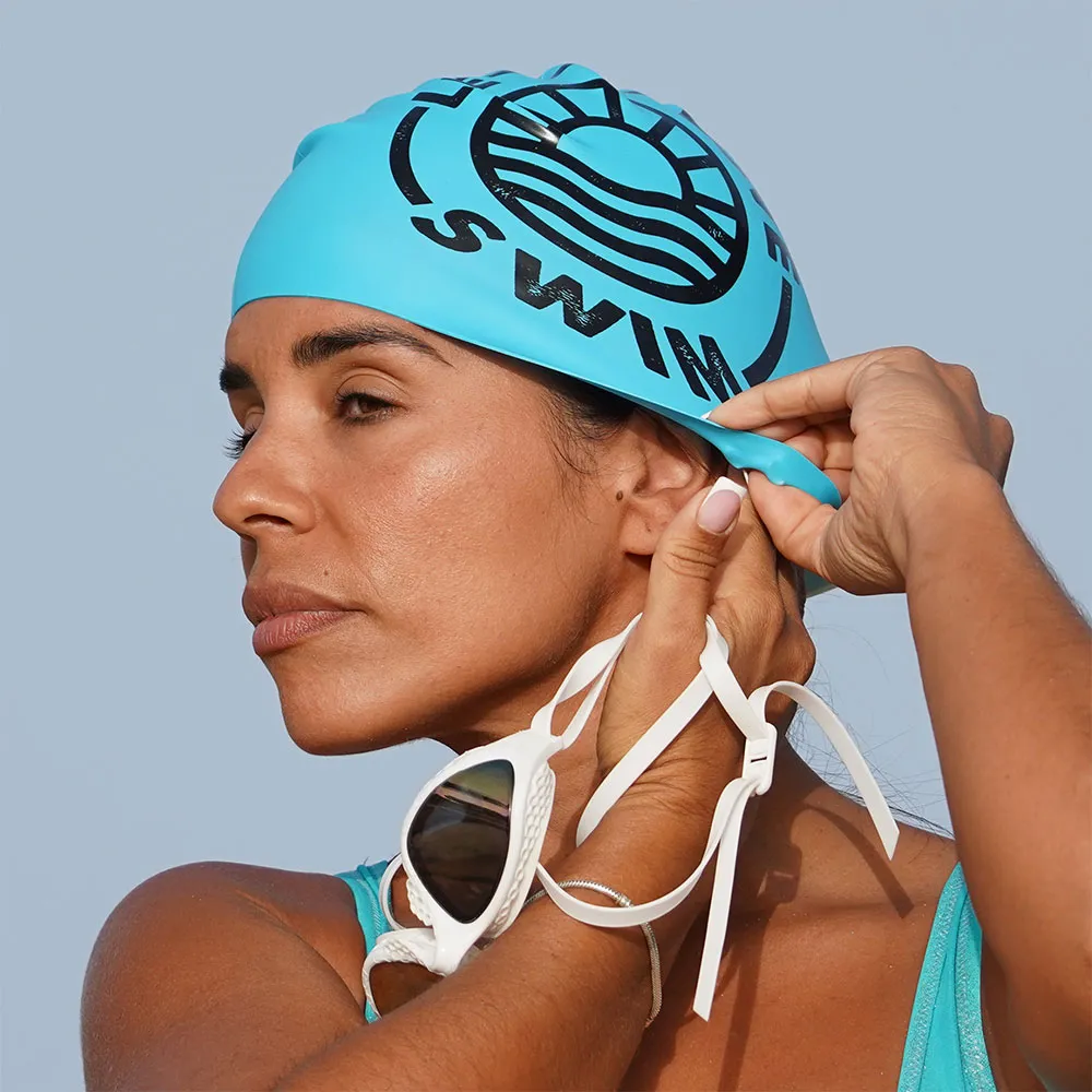 De sterke fargene på Buddyswim-badehettene forbedrer svømmerens synlighet, spesielt i åpent vann.