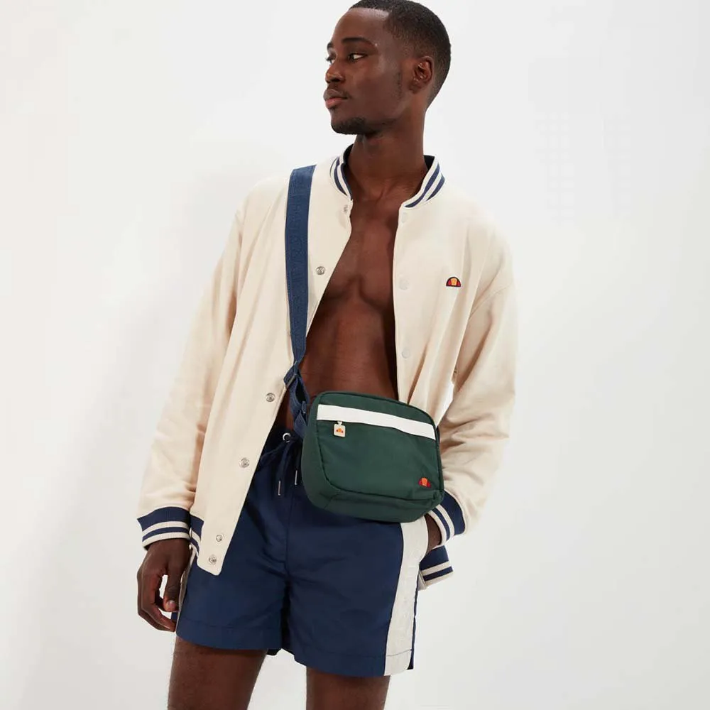 Shortsen har en beige farge med kontrastfargede Ellesse-merkevarer, noe som øker appellen.