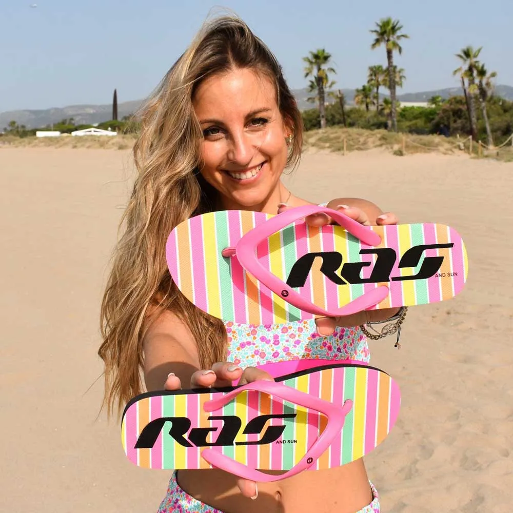 Opplev det ultimateOm sommeren, bruk fottøy med RAS Rainbow flip-flops. De er den perfekte blandingen av komfort, holdbarhet og stil, designet for å løfte sommergarderoben din og holde føttene dine følende seg best. Ikke nøye deg med vanlige flip-flops; velg RAS Rainbow flip-flops og opplev forskjellen. Gå inn i sommeren med selvtillit og stil. Gjør et statement med hvert skritt. Velg RAS Rainbow flip-flops og omfavn den levende sommerånden. De er det perfekte valget for den moderne kvinnen som verdsetter komfort, kvalitet og stil. Opplev RAS-forskjellen i dag.
