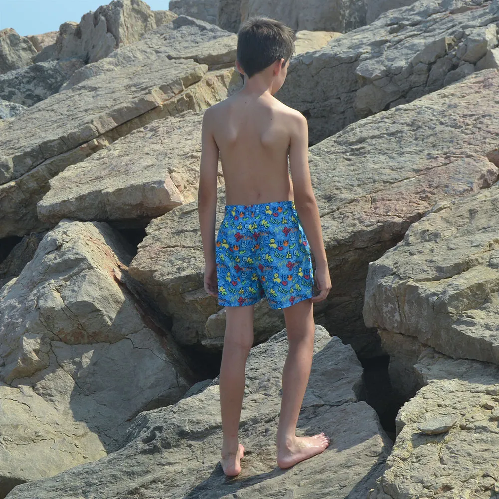 Disse guttebadebuksene er konstruert for perfekt passform og ubegrenset bevegelse, slik at barnet ditt kan nyte all vannaktivitet med letthet. Det hurtigttørkende stoffet sikrer at de er klare for en ny runde moro på kort tid, selv etter en dukkert i havet. Den elastiske linningen gir en sikker og komfortabel passform, mens snøringen gjør det enkelt å justere og gir en personlig følelse. Ingen mer sagging eller ubehagelig klumping – bare ren, uforfalsket moro!