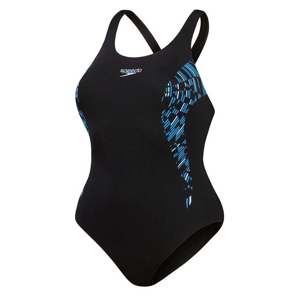Med medium støtte til bysten via et komfortabelt bystehylle-fôr, inkluderer drakten også en flatterende, buet plastisolprint-grafikk i kontrasterende blåtoner.