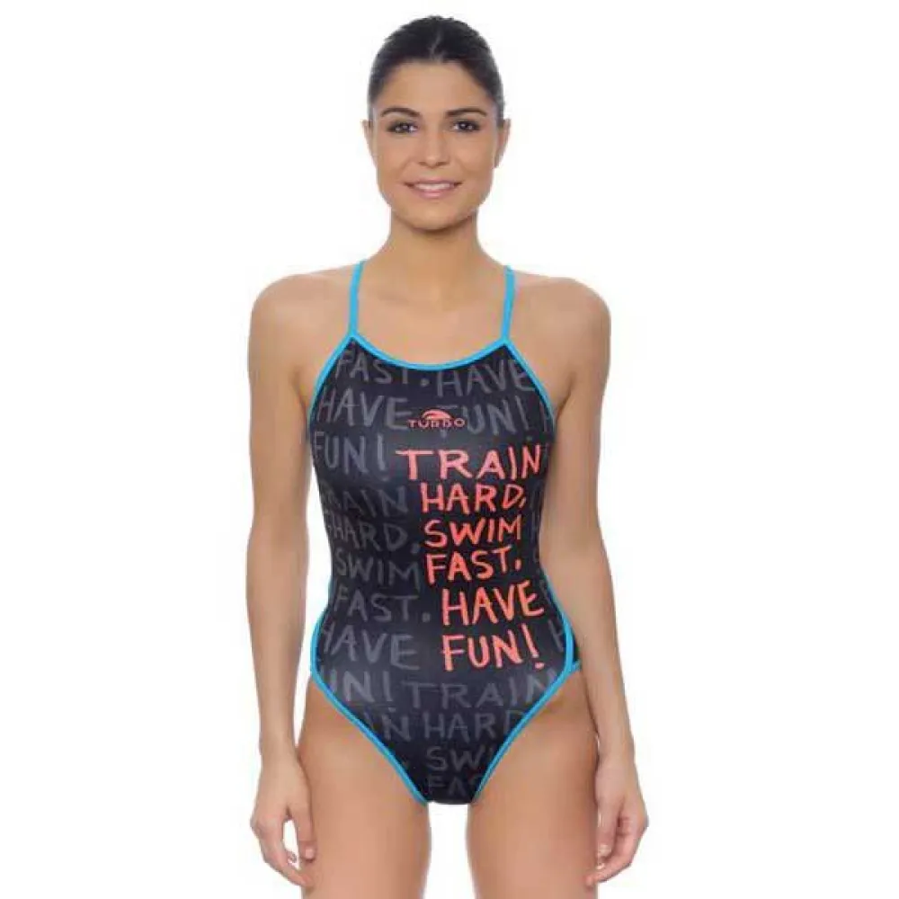 Turbo bruker verdens tøffeste anti klor stoff. Vist seg å vare i et barskt klor miljø. Dette badetøy er ideelt for lange treningsøkter i bassenget eller havet som det vil ikke gni på grunn av sin komfortabel passform. Perfekt for bading, vannpolo, dykking og mange andre vannsporter. Den komfort og passform på en Turbo badedrakt er som ingen andre.