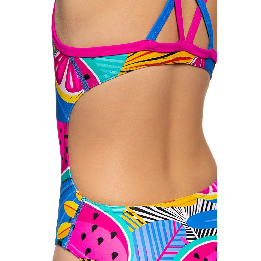 O maiô esportivo Crossback junior com decote alto na coxa é adequado tanto para treinos regulares quanto para atividades ao ar livre. Uma parte de trás aberta e alças finas duplas proporcionam maior liberdade de movimento dos braços e uma sensação leve na água. A coxa alta proporciona máxima liberdade de movimento. O forro oferece um leve efeito corretivo e evita que o maiô fique transparente. O modelo é feito de tecido BASE. Maiôs feitos com esse tecido possuem um visual atraente, esticam perfeitamente e criam uma compressão adicional. CARACTERÍSTICAS: Tecido BASE - durável, resistente ao estiramento e de secagem rápida. Corte nas costas Cross Back - parte de trás aberta, alças finas duplas proporcionam maior liberdade de movimento dos braços e uma sensação de leveza na água. Forro - a parte da frente do maiô é duplicada com forro. Coxa alta - máxima liberdade de movimento, faz as pernas parecerem mais longas.