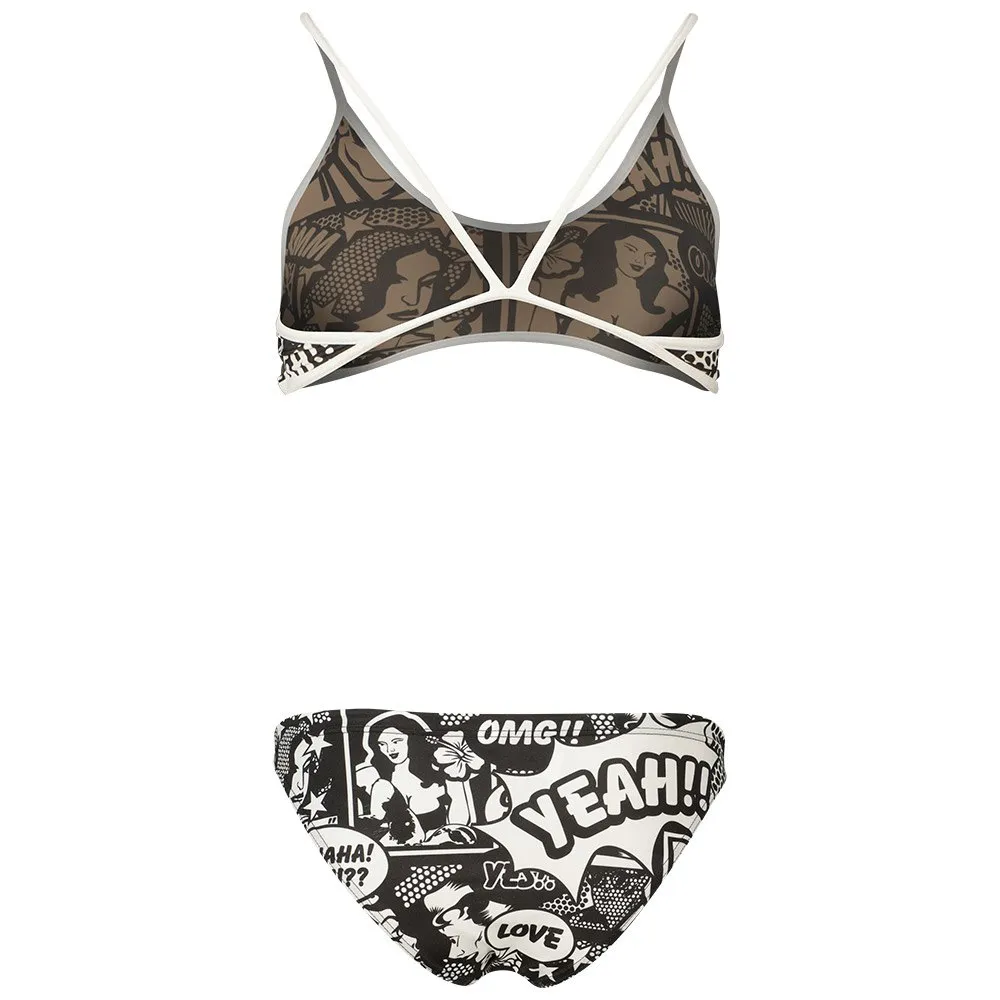 Faça uma declaração ousada com o Biquíni TURBO Yeah Comic. Os seus gráficos vibrantes de pop-art garantem que você se destaque, enquanto o seu design é projetado para um desempenho de elite. Fabricado em Barcelona a partir de um tecido ultradurável e resistente ao cloro, este biquíni suporta as condições de treino mais rigorosas, mantendo a sua cor explosiva e forma. O ajuste seguro, as alças finas cruzadas nas costas para total liberdade de movimento e as costuras planas sem atrito oferecem conforto superior, permitindo que você se concentre puramente no seu desempenho na piscina ou em águas abertas