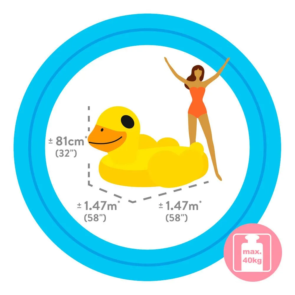 Intex uppblåsbar anka med mått: 147x147x81 cm.
