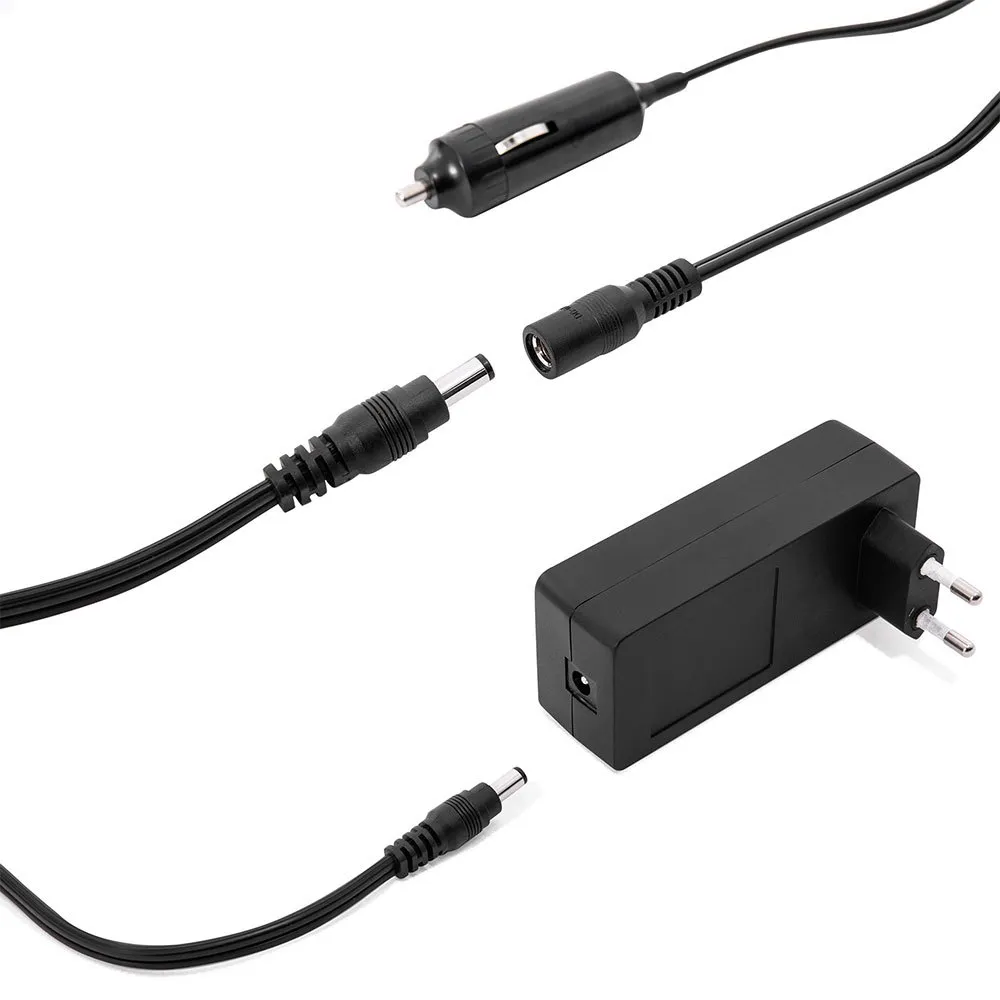 Med 3 utbytbara justerbara munstycken (en nål) för valfri ventilstorlek, fungerar med en 220 240v-kontakt eller billaddare (båda medföljer).