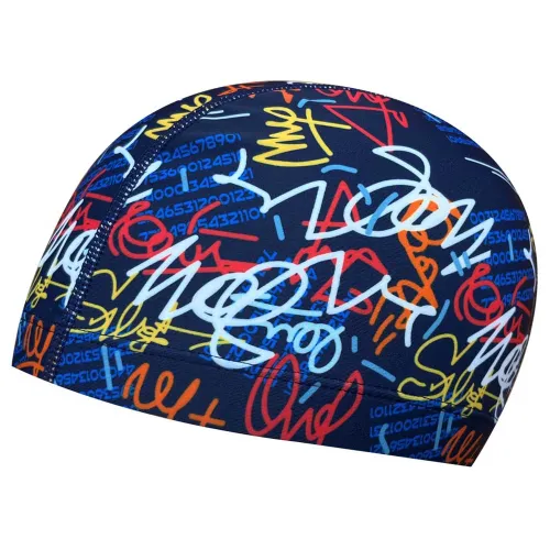 Den överlägsna kvaliteten på Lycra-materialet säkerställer en bekväm och säker passform utan att kännas för tight eller restriktiv. Den anpassar sig till huvudets form och skapar en slät, hydrodynamisk yta som minimerar vattenmotståndet. Mössans syntetiska konstruktion gör den mycket motståndskraftig mot klor och andra poolkemikalier, vilket säkerställer dess livslängd och livfulla utseende. Den är också snabbtorkande, så din unga simmare slipper hantera en fuktig, obekväm mössa efter simningen.