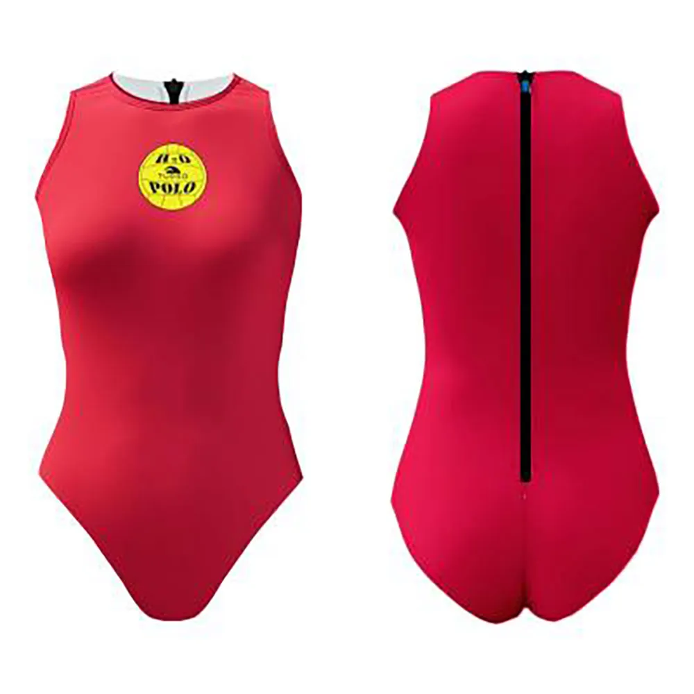 Denna Turbo-baddräkt är speciellt designad för vattenpolo. De breda axelbanden ger total rörelsefrihet och perfekt stöd. Den anpassar sig perfekt till kroppen vilket gör det svårt att greppa baddräkten under vattenpolomatcher. Den är tillverkad av marknadens bästa tyg med dubbel frontfoder. Den är resistent mot klor från poolen och mot UV-strålar. Och av denna anledning bibehålls färgernas intensitet vid upprepad användning över tid.