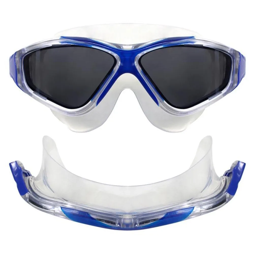 Linsen är ljusblå i färg för att öka synligheten i öppet vatten men lämpar sig också för ett brett utbud av andra vattensporter inklusive poolanvändning.