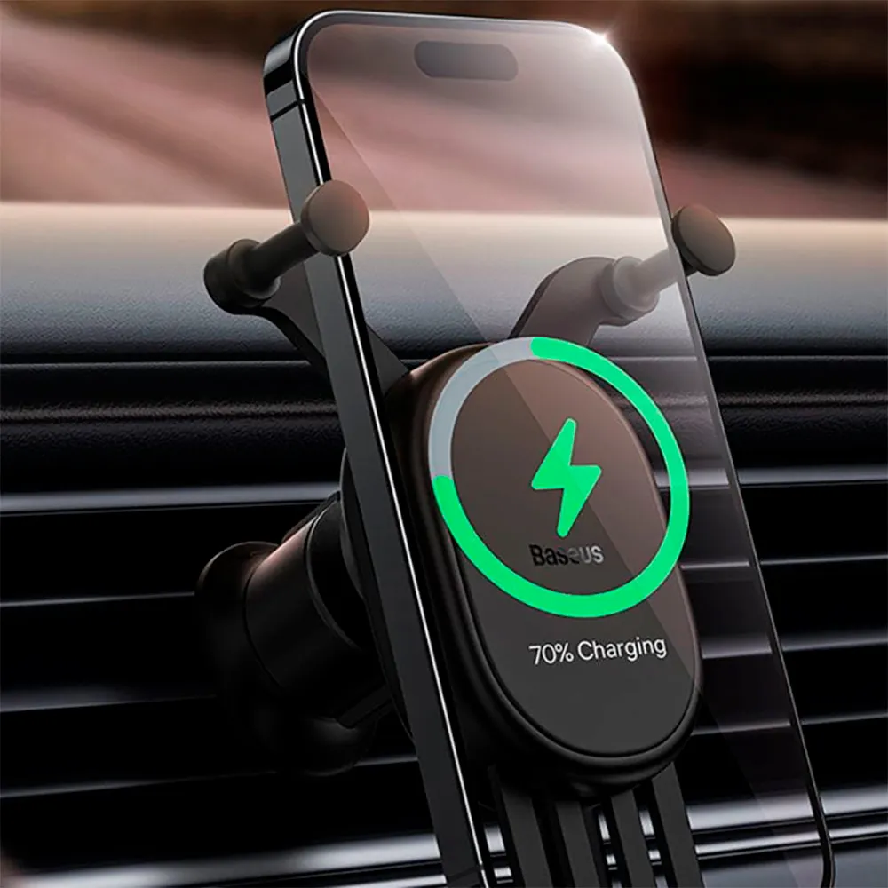 - Denne Baseus Pro bilholder med 15W gravitationsbaseret trådløs opladning er kompatibel med smartphones, der understøtter Qi trådløs opladning og har en skærmstørrelse mellem 5.4 og 6.7 tommer. Den gravitationsbaserede metode i bilmobiltelefonholdere er et fastspændingssystem, der bruger tyngdekraften til automatisk og sikkert at fastgøre enheden. Når telefonen placeres i holderen, aktiverer dens egen vægt en mekanisme, der justerer sideklemmerne, omfavner enheden og holder den på plads.