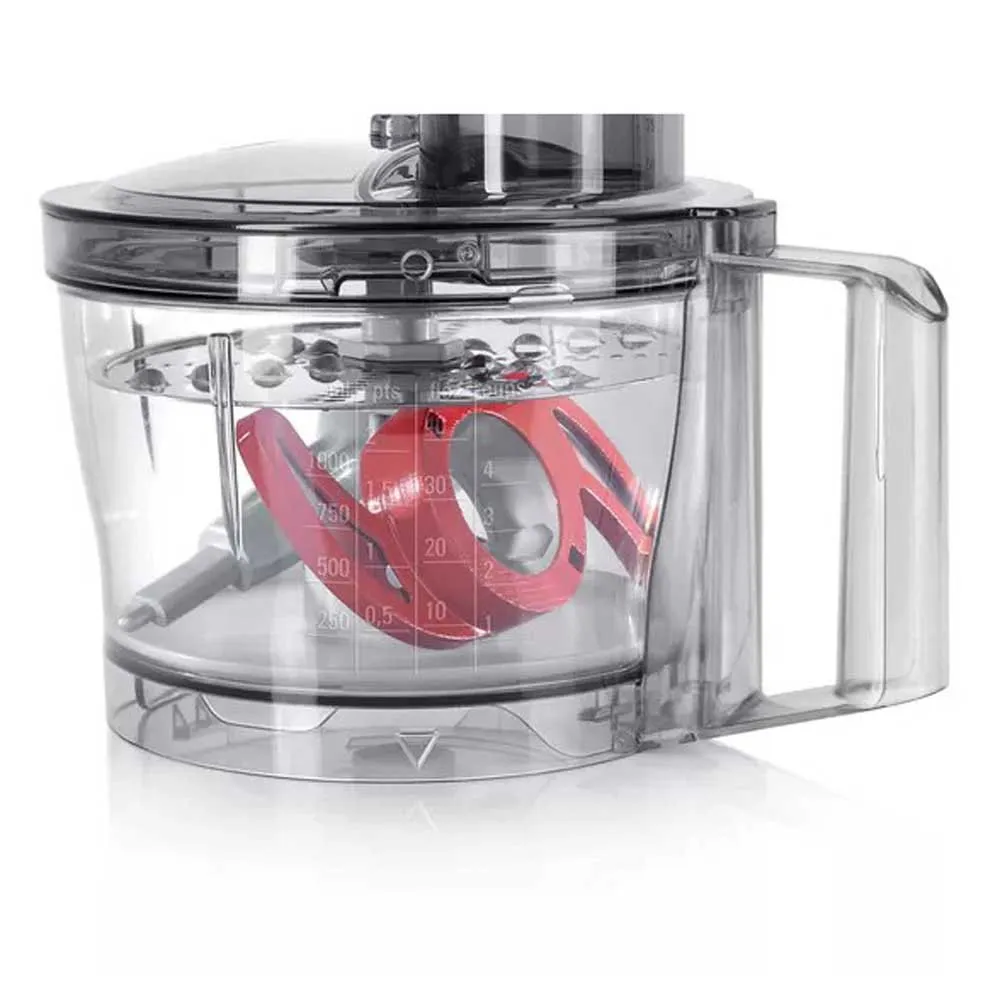 - 2,3 l transparent plastmikserbolle til 500 g mel + ingredienser (maksimalt 0,8 kg dejblanding) inklusive låg med hældetud og fyldekande.