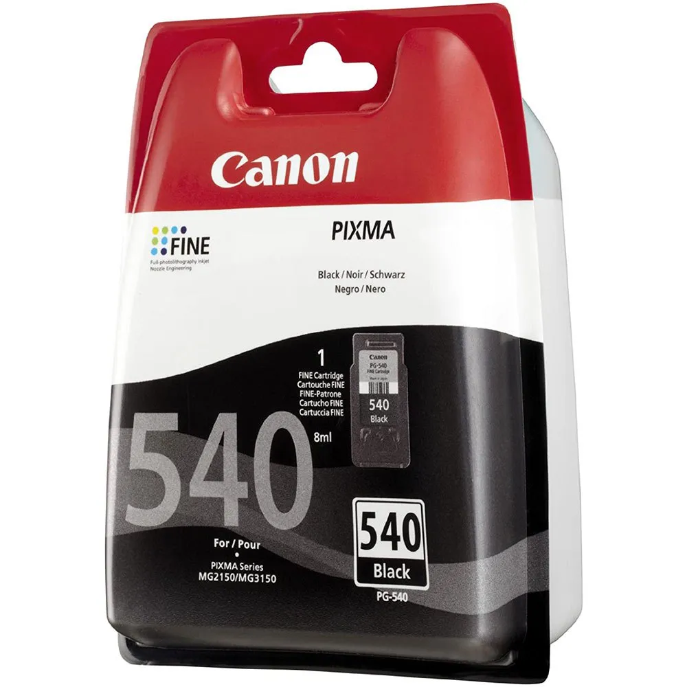 Canon PG 540 m / sek. Type: Original, Blæk type: Pigmentbaseret blæk, Udskrivningsfarver: Sort. Pakningstype: Blister