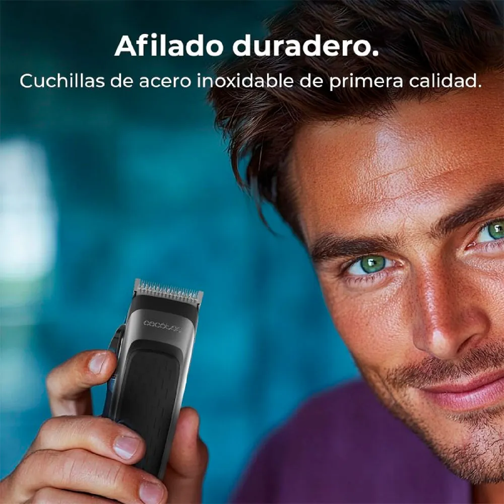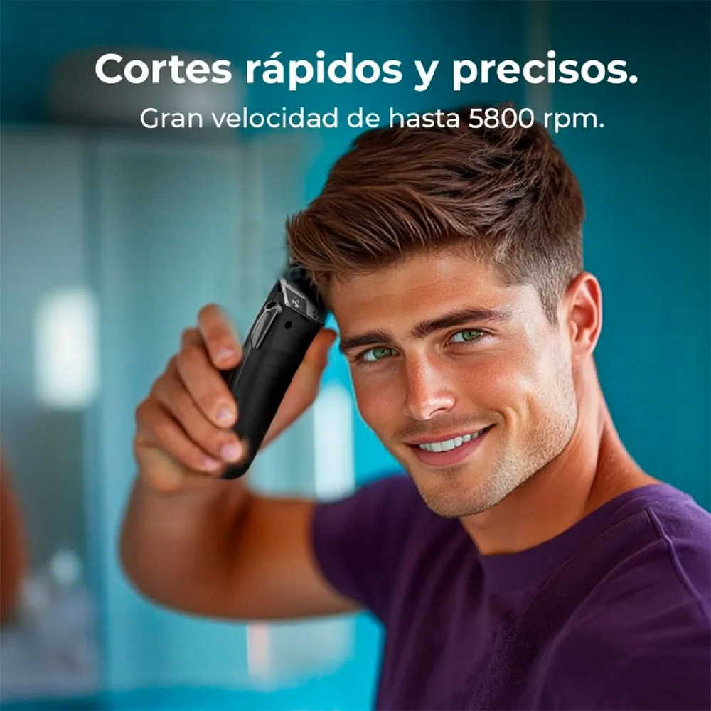 Opnå ubesværede klipninger i professionel kvalitet med CECOTEC PrecisionCare Power Blade. Dens kraftfulde motor på 5800 omdr./min. og ultraskarpe knive i rustfrit stål garanterer en hurtig, ensartet og millimeterpræcis klipning hver gang. Det lette, ergonomiske design giver total kontrol og komfort under brug. Tilpas dit look med et justeringshåndtag med 5 indstillinger og 6 alsidige afstandskamme, herunder specialiserede kamme til perfekt aftrapning ved ørerne. Mestrer din stil med ultimativ præcision og lethed