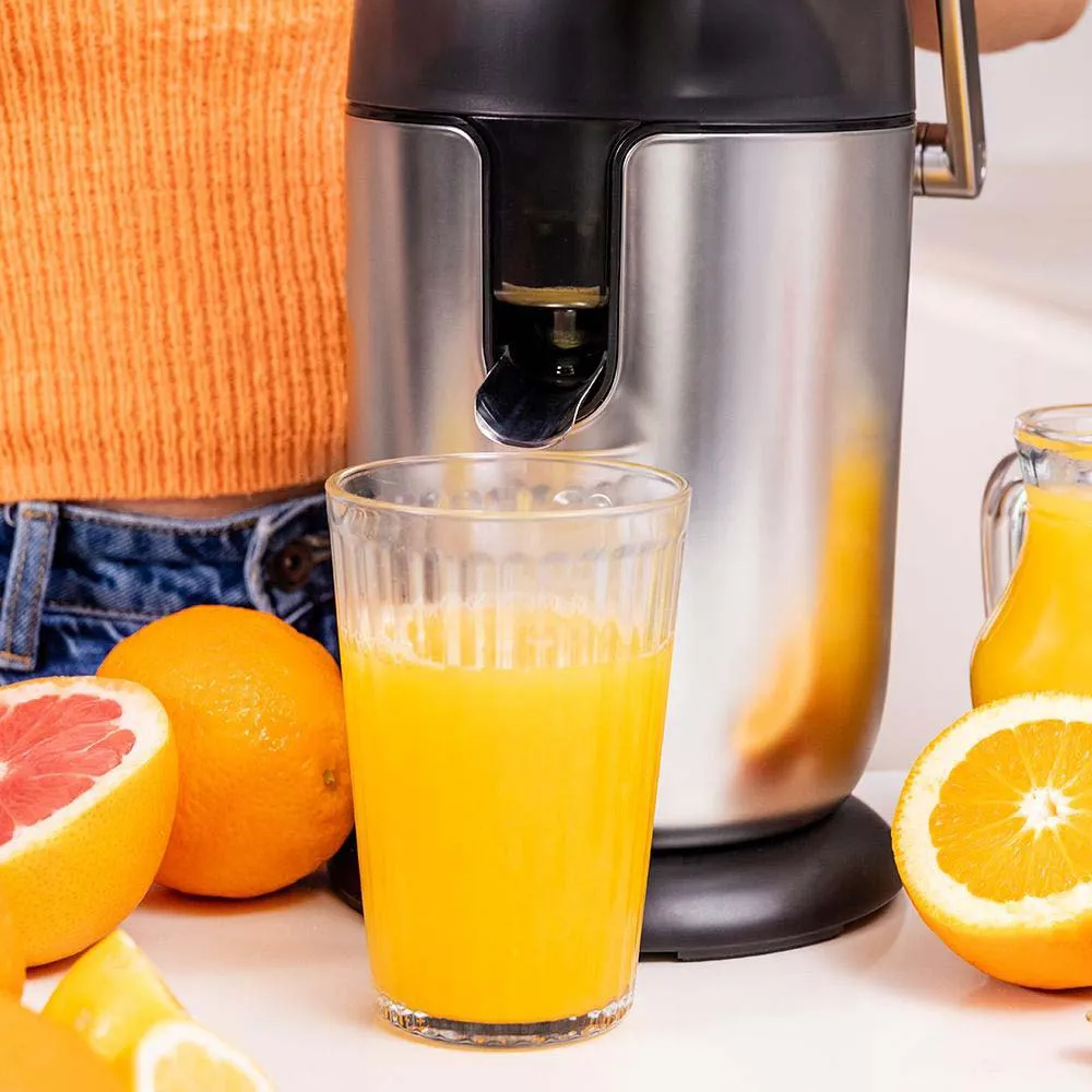 Effekt: højeffekts elektrisk citrusarmpresser, der presser hurtigt og nemt, så du kan få mest muligt ud af dine frugter.