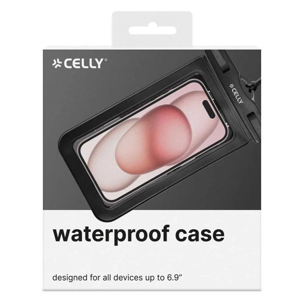 - Den brugervenlige lukkeclips forhindrer vand i at trænge ind og giver komplet beskyttelse. Derudover giver den medfølgende aftagelige sorte snor dig mulighed for nemt at bære din smartphone, uanset hvor du går.