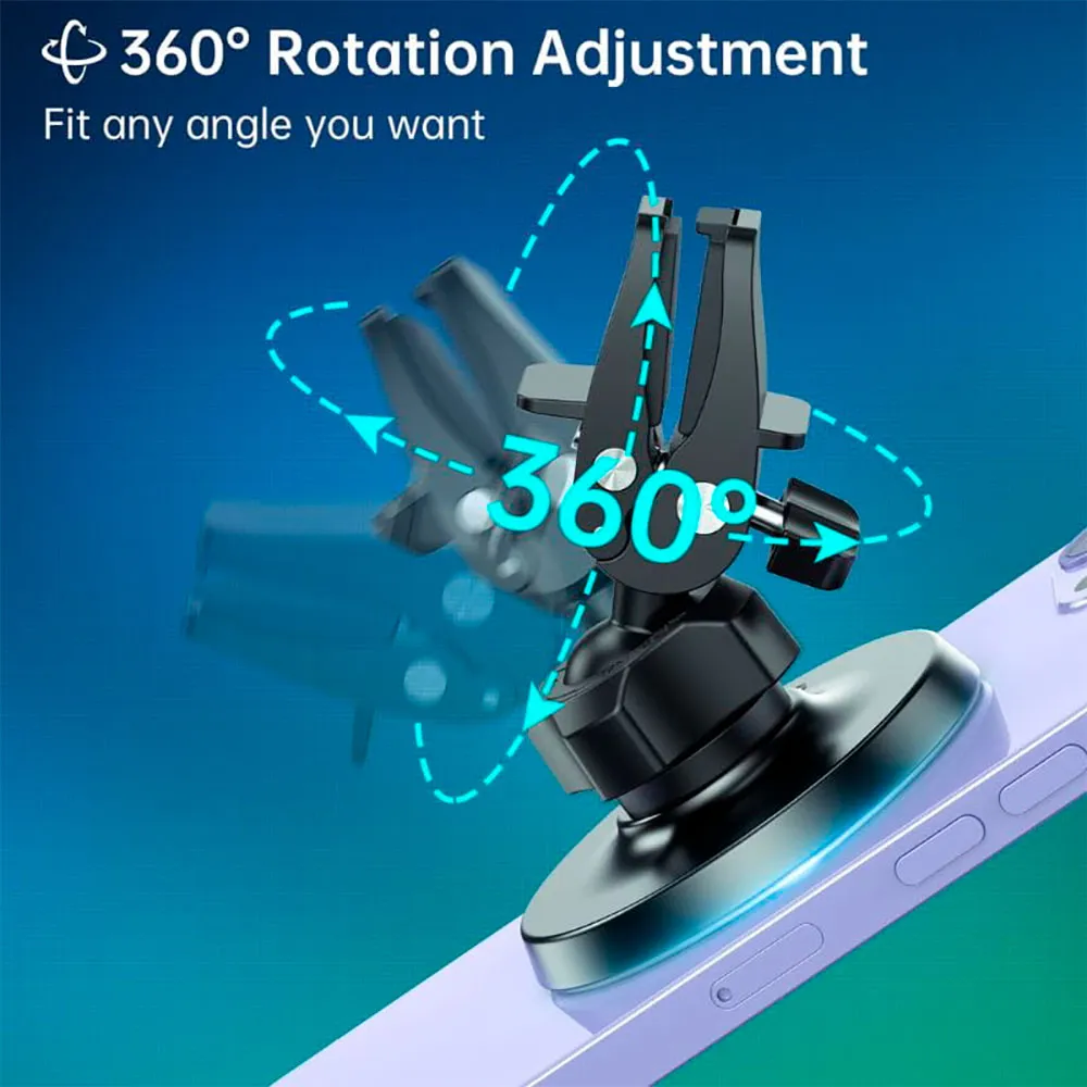 Magnetisk ventilationsholder med MagSafe-type justering og 360° kugleled til at justere vinklen.