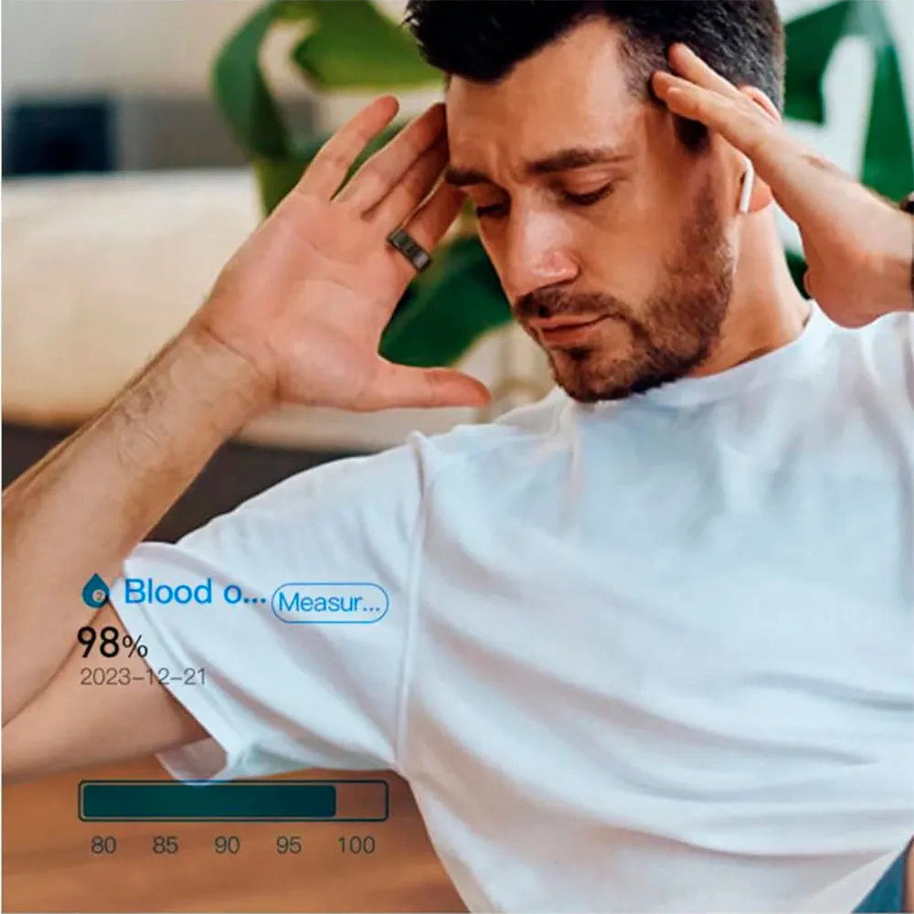 Colmi R02, i sort, smart ring i størrelse 8, aktivitetssporing, iltmåling i blodet og IP68 vandtæthed.