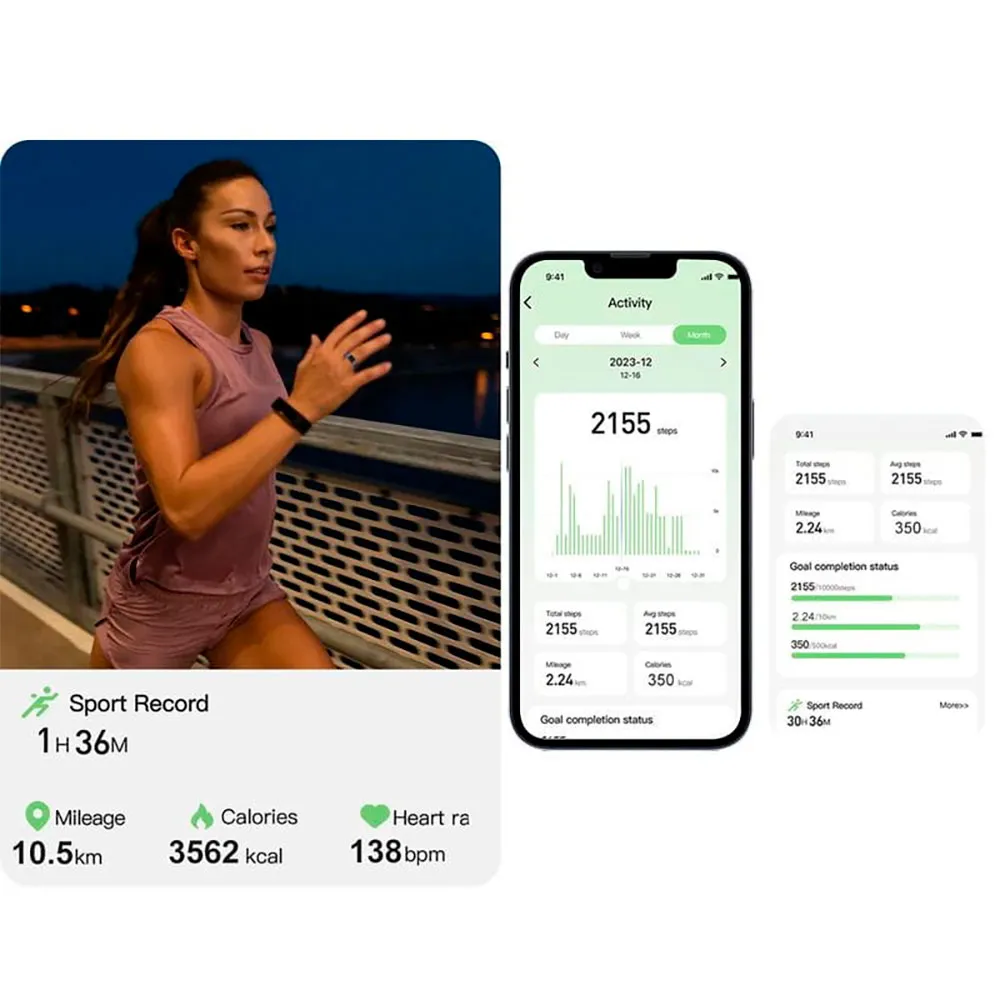 Denne model registrerer præcist forskellige kropsdata såsom antal skridt, forbrændte kalorier og er IP68 vandtæt og op til 5 ATM.