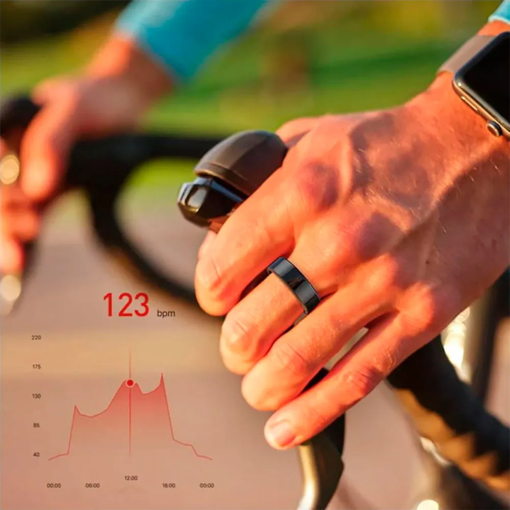 Smart Ring - Størrelse 8 - Bluetooth v5.0 - QRing APP - IP68 og 5 ATM vandtæthed - Aktivitetssporing - Pulsmåling - Søvnmonitor - Lang batterilevetid - Opladningsetui - Guld.