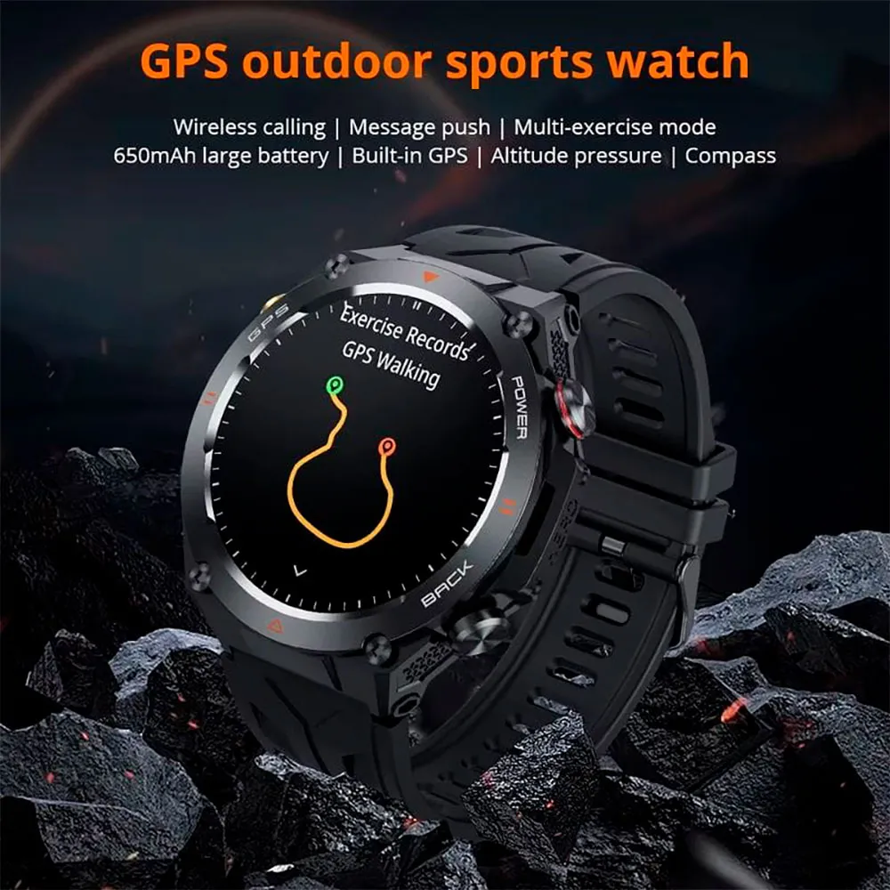 Colmi V75, et sports-smartwatch med en størrelse på 1.45 tommer, integreret GPS-funktion, barometer og højdemåler og en batterilevetid på op til 1 uge. Dette gør den til en model designet til bjergbestigere og vandrere. Derudover har den andre fordele som det integrerede kompas, muligheden for at foretage opkald via Bluetooth og forskellige sportstilstande.
