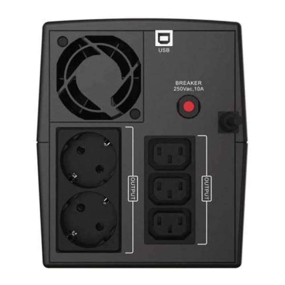 Designet til enkelhed og effektivitet skifter denne Uninterruptible Power Supply (UPS) øjeblikkeligt til batteristrøm i det øjeblik, den registrerer en netfejl. Denne problemfri overgang giver dig et afgørende tidsrum til at gemme dine vigtige dokumenter, afslutte kritiske opgaver og udføre en sikker og ordentlig nedlukning af dine systemer. Dette forhindrer de pludselige strømafbrydelser, der kan beskadige følsomme komponenter som harddiske og bundkort. Mere end bare et batteri, det beskytter også aktivt dine tilsluttede enheder mod almindelige strømproblemer som overspændinger og spændingsspidser, som kan nedbryde elektronik over tid og forårsage for tidlig fejl.