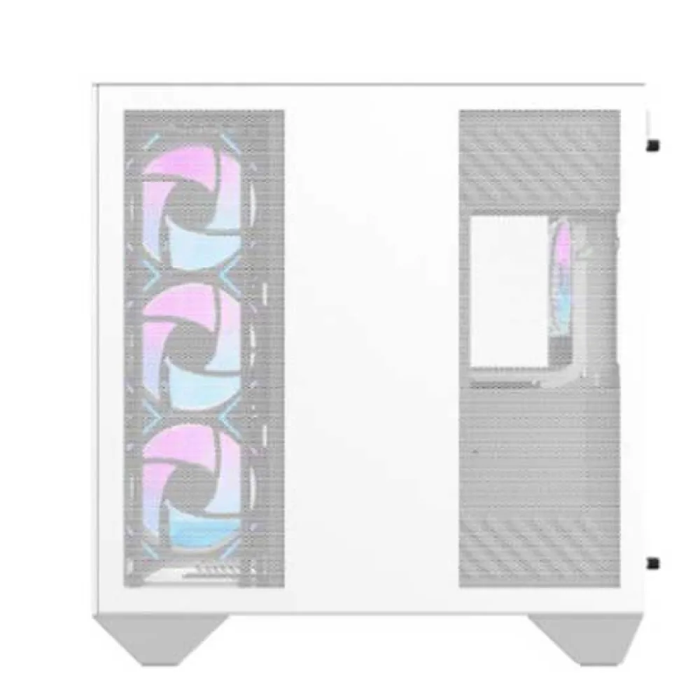 Hængslet Sidepanel i Hærdet Glas: Fremvis dit omhyggeligt udformede build med et holdbart, krystalklart hærdet glaspanel, der giver nem, værktøjsfri adgang til dine komponenter. Omfattende kølingsalsidighed: Understøtter flere blæser- og radiatorlayouts, inklusive frontmonterede 360 mm radiatorer og adskillige 120 mm blæserplaceringer i hele kabinettet.