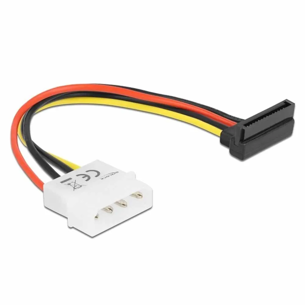 Dette strømkabel gør det muligt at konvertere interfacet på almindelige ATX-strømkilder til SATA-formatet til strømforsyning af SATA-drev. Det vinklede SATA-stik fører kablet nedad fra SATA-HDD´en, så du stadig kan tilslutte dit drev på trods af pladsbegrænsninger.