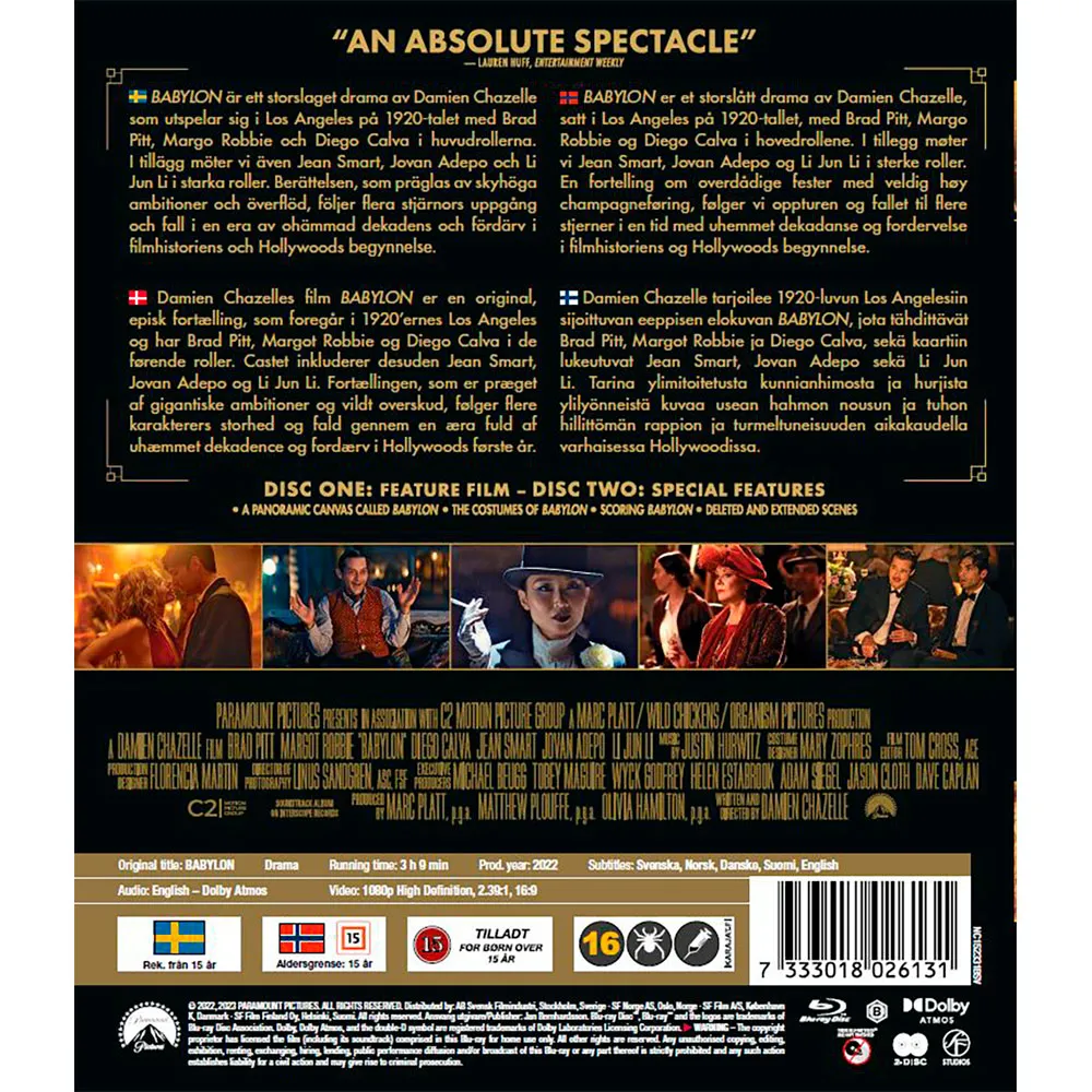Gå bag lærredet med et væld af overbevisende specialfunktioner, der dykker dybt ned i skabelsen af ​​denne monumentale film. Denne udgave er spækket med behind-the-scenes indhold, der giver et eksklusivt indblik i det omhyggelige håndværk. Udforsk instruktørens vision i "A Panoramic Canvas Called Babylon", opdag de utrolige detaljer i den periodekorrekte påklædning i "The Costumes of Babylon", og føl rytmen fra Jazz Age med "Scoring Babylon". Disse featuretter giver uvurderlig indsigt, der beriger din forståelse og påskønnelse af filmens store omfang og kunstneriske præstationer, hvilket gør dette til en af de mest komplette DVD´er for samlere.