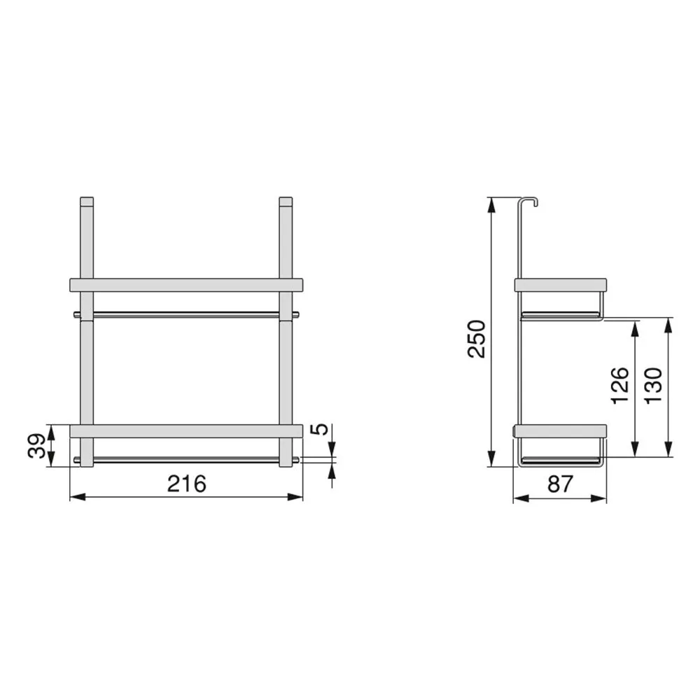 - Hylder dimensioner 216 x 87 mm.