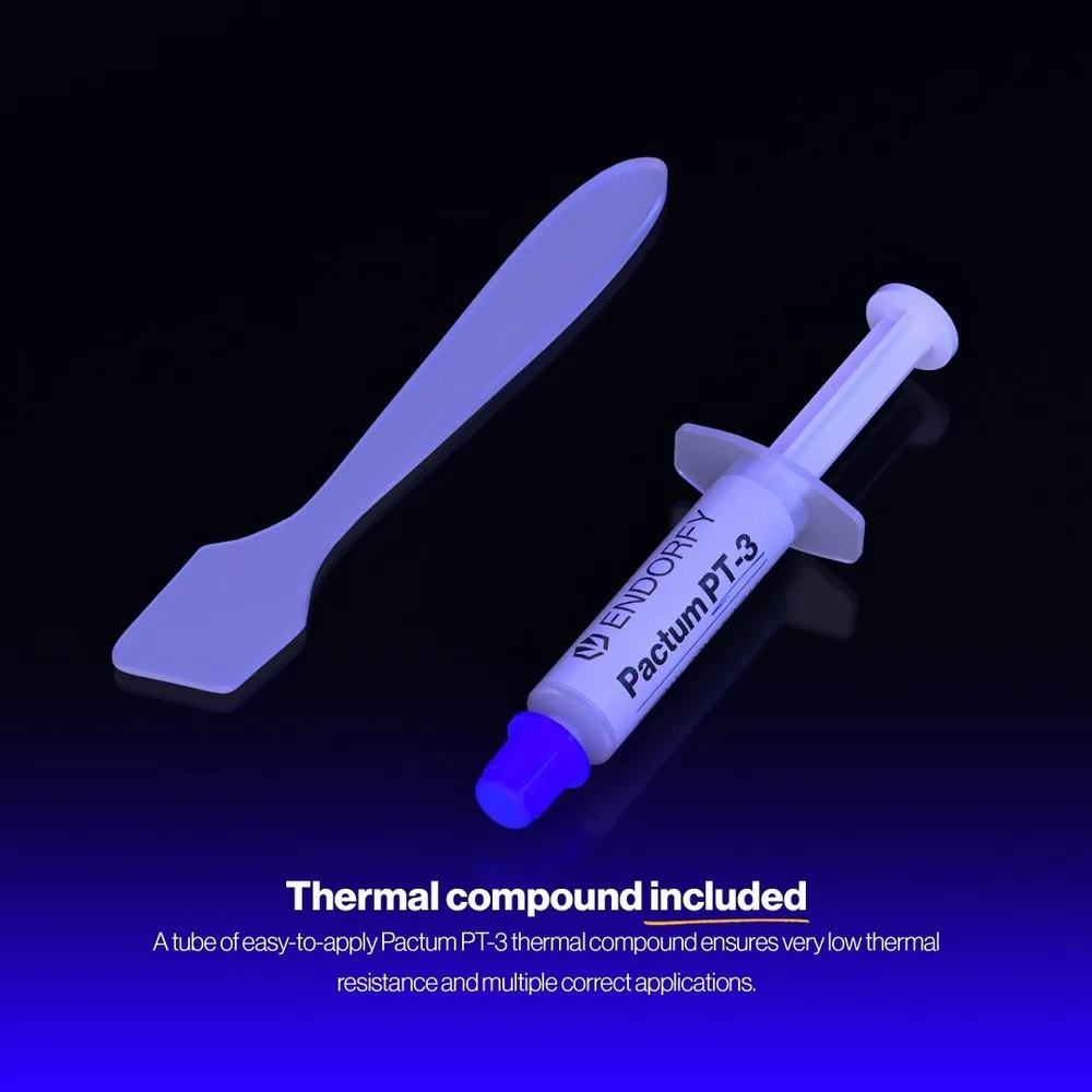 - Sammen med Fera 5 Dual Fan får du en tube med effektiv og letanvendelig Pactum PT-3 termisk pasta, som vil dække dig til flere installationer. Du har intet at frygte - det har vi selv sørget for. Specifikationer: