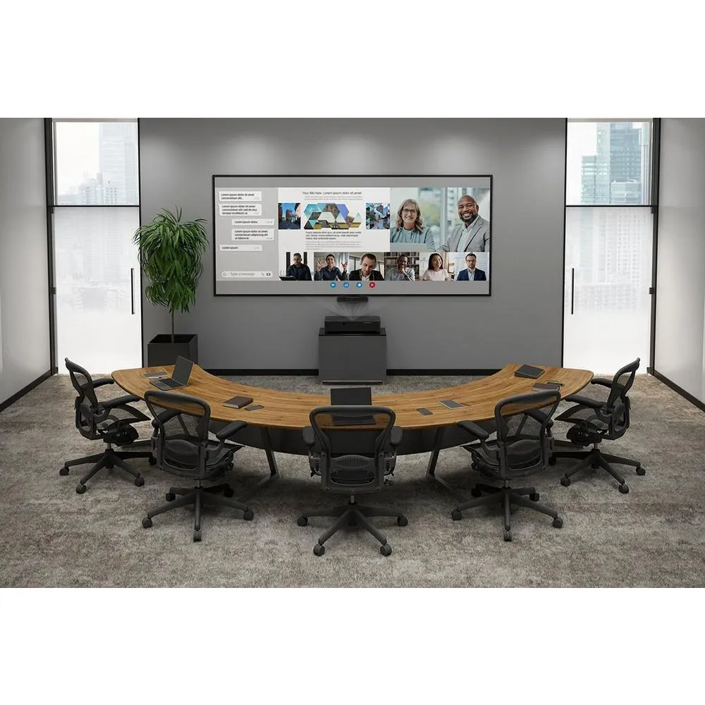 EB-815E understøtter flere billedformater og multi-projektor kant-blending til en omkostningseffektiv, problemfri og energieffektiv ultrabred skærm, perfekt til videokonferencer.