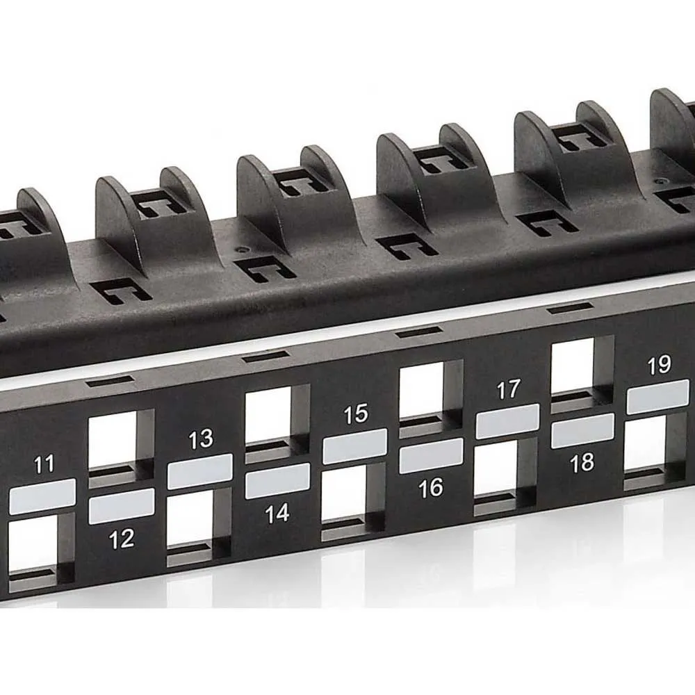 Med 24 porte anbefales dette patch panel at blive forbundet med equip® uafskærmede keystone-stik og kabler.