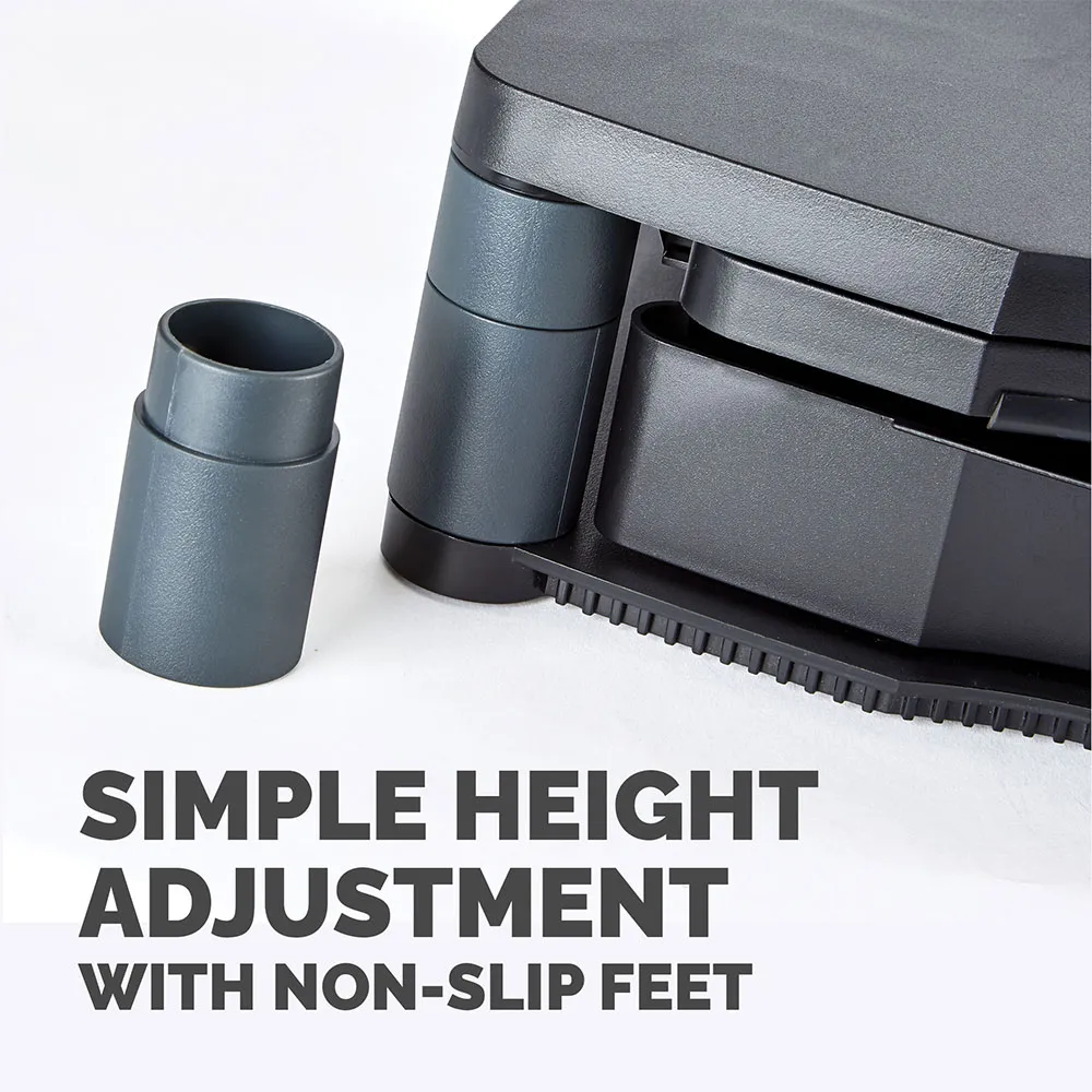 FLERE HØJDEJUSTERINGER - Premium skærmforhøjer plus tilbyder tre forskellige stabelbare højdejusteringer for at maksimere synskomforten (Højdejusteringer: 11.5/13.5/16.5 cm).