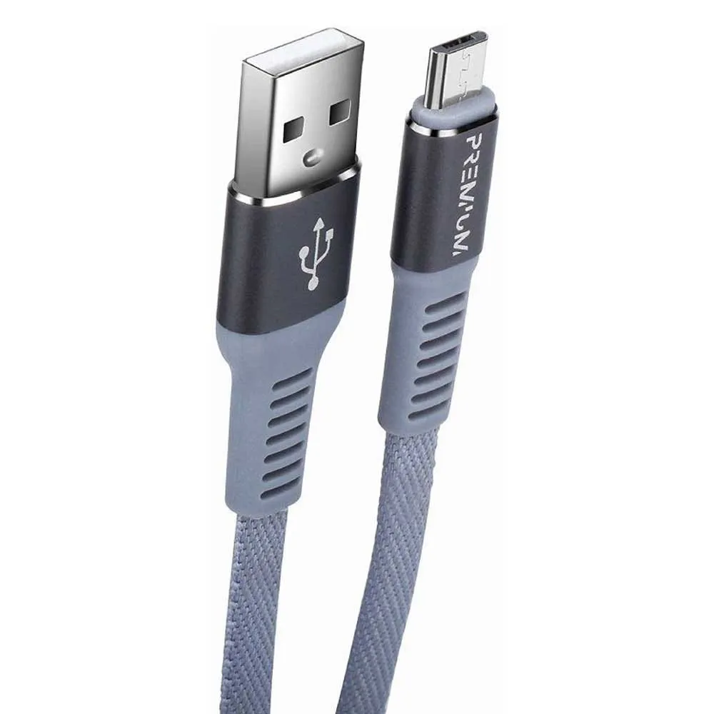 Dette er et 3 meter mikro USB til USB-kabel med en PREMIUM finish. Det har et filtfrit flettet kabel med aluminiumsfinisher, med laserindgraveringer og forstærkninger ved samlingerne (kabel-terminal) for større holdbarhed.