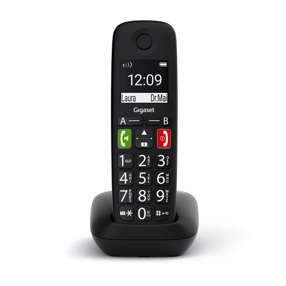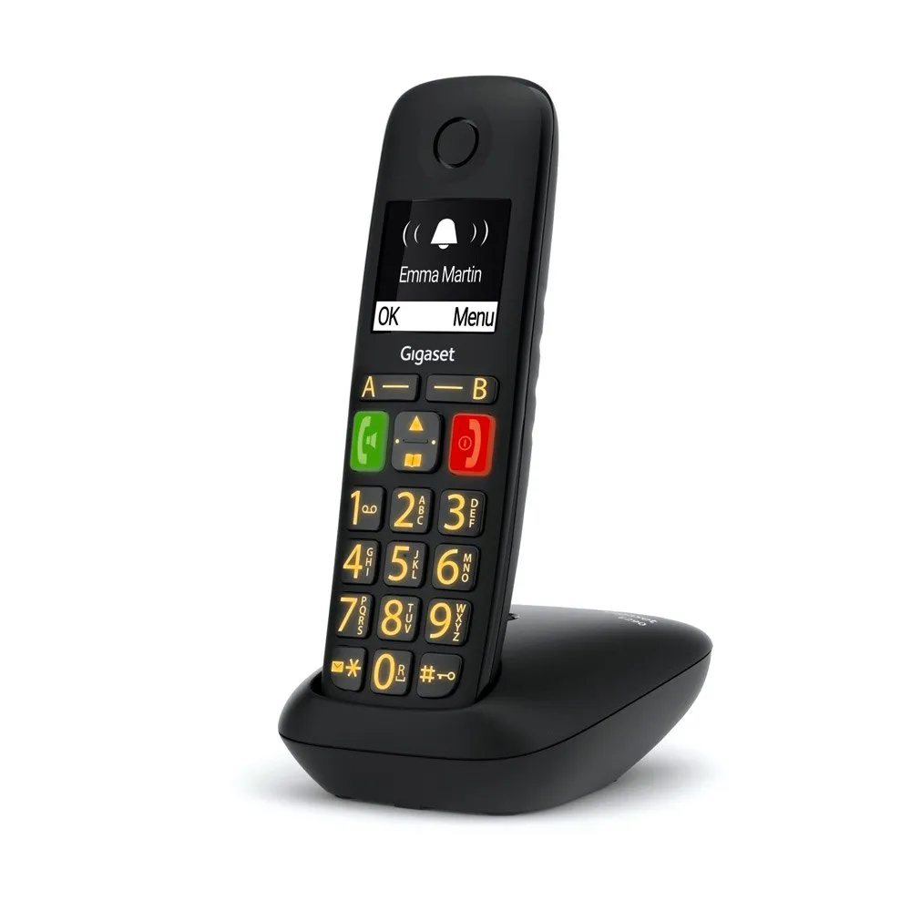 Oplev ubesværet kommunikation med GIGASET E290 trådløs fastnettelefon. Designet til alle aldre, den har store, baggrundsbelyste taster og et høj-kontrast display med jumbotilstand for overlegen læsbarhed. Nyd førsteklasses lydkvalitet, forbedret af en forstærkerfunktion og høreapparatkompatibilitet. To direkte opkaldstaster giver øjeblikkelig adgang til vigtige kontakter, mens telefonbogen med 150 poster og opkaldsblokering tilbyder ultimativ bekvemmelighed og kontrol. Enkel plug-and-play opsætning får dig i gang med at tale på få minutter. EU-stik