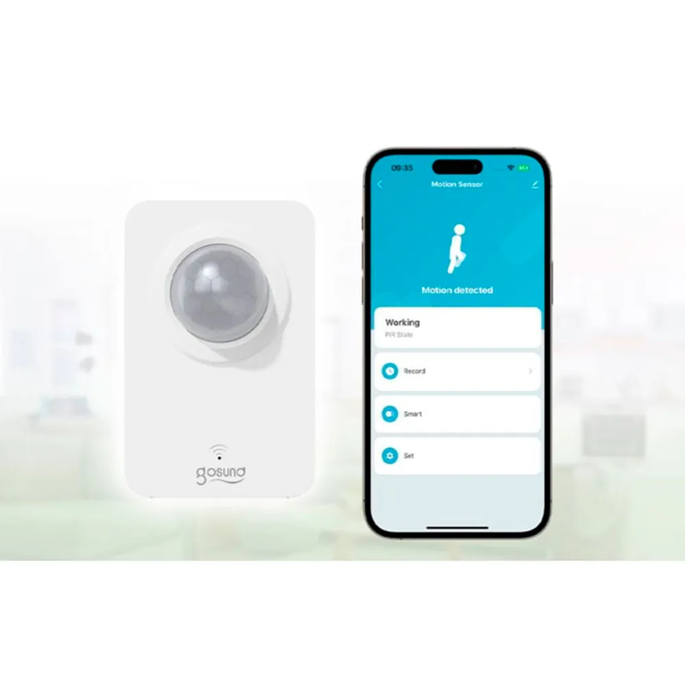 Den styres fjernbetjent via Gosund-appen, som sender advarsler og aktiverer alarmer på din mobiltelefon, når der registreres mistænkelig aktivitet.