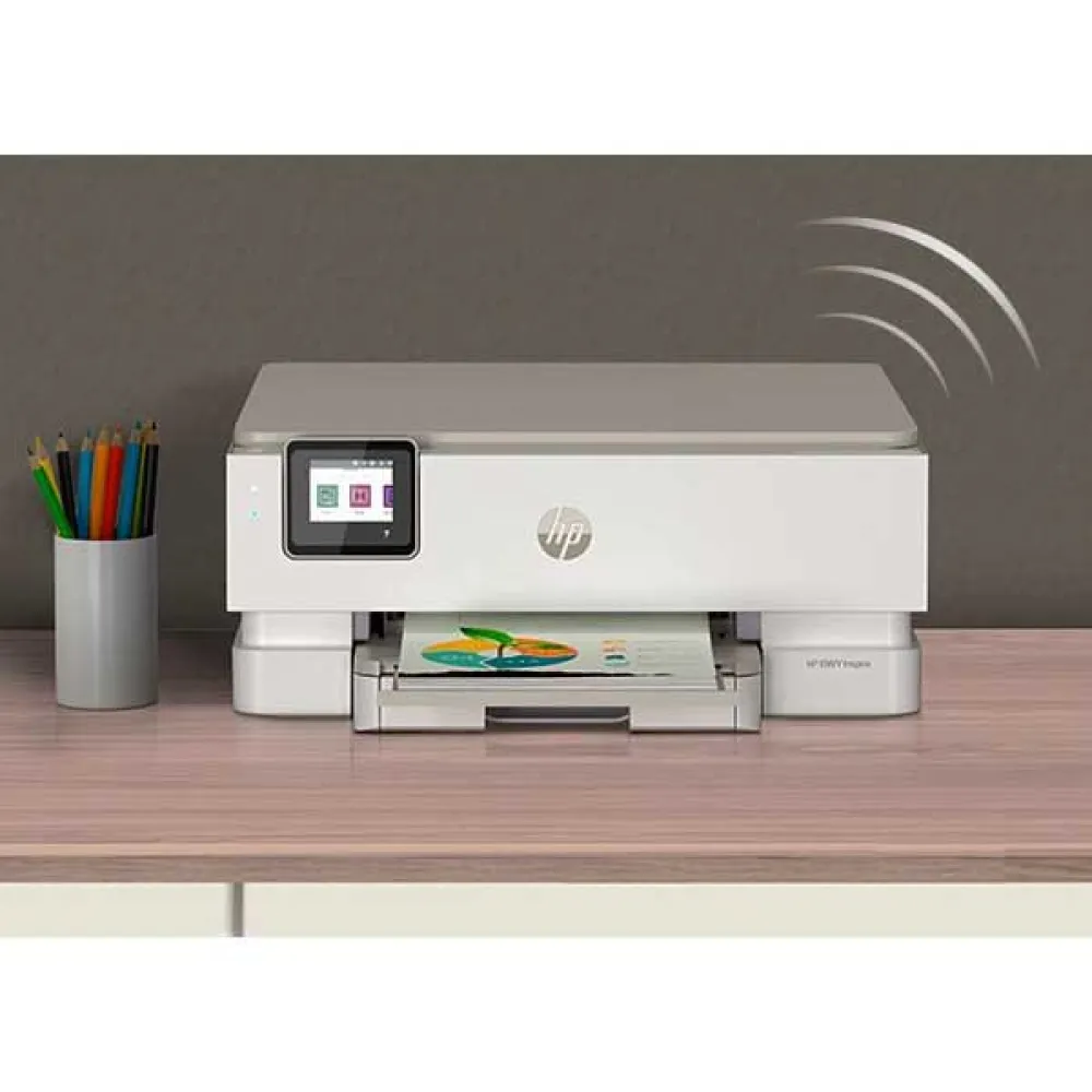 Med et elegant hvidt design er HP Envy Inspire 7224 en stilfuld tilføjelse til ethvert arbejdsområde.