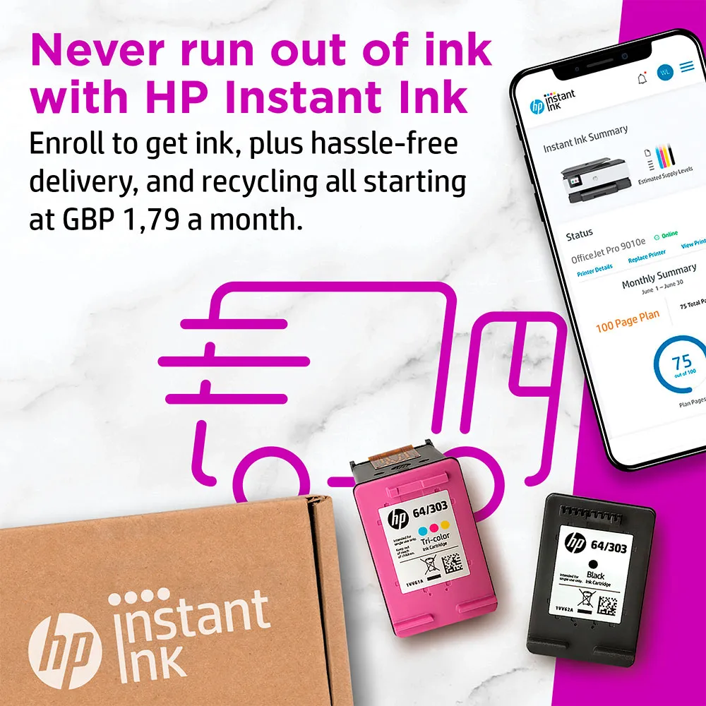 i sin kategori.Løb aldrig tør for blæk igen med Instant InkTilmeld dig Instant Ink for at få blæk og nyd hjemmelevering og genbrug af brugte patroner, hvilket sparer op til 70%.Skift eller annuller når som helst.HP+-udskrivning er virkelig nemtMed HP+ kan du oprette forbindelse til en sky, der automatisk registrerer og korrigerer forbindelsesproblemer.