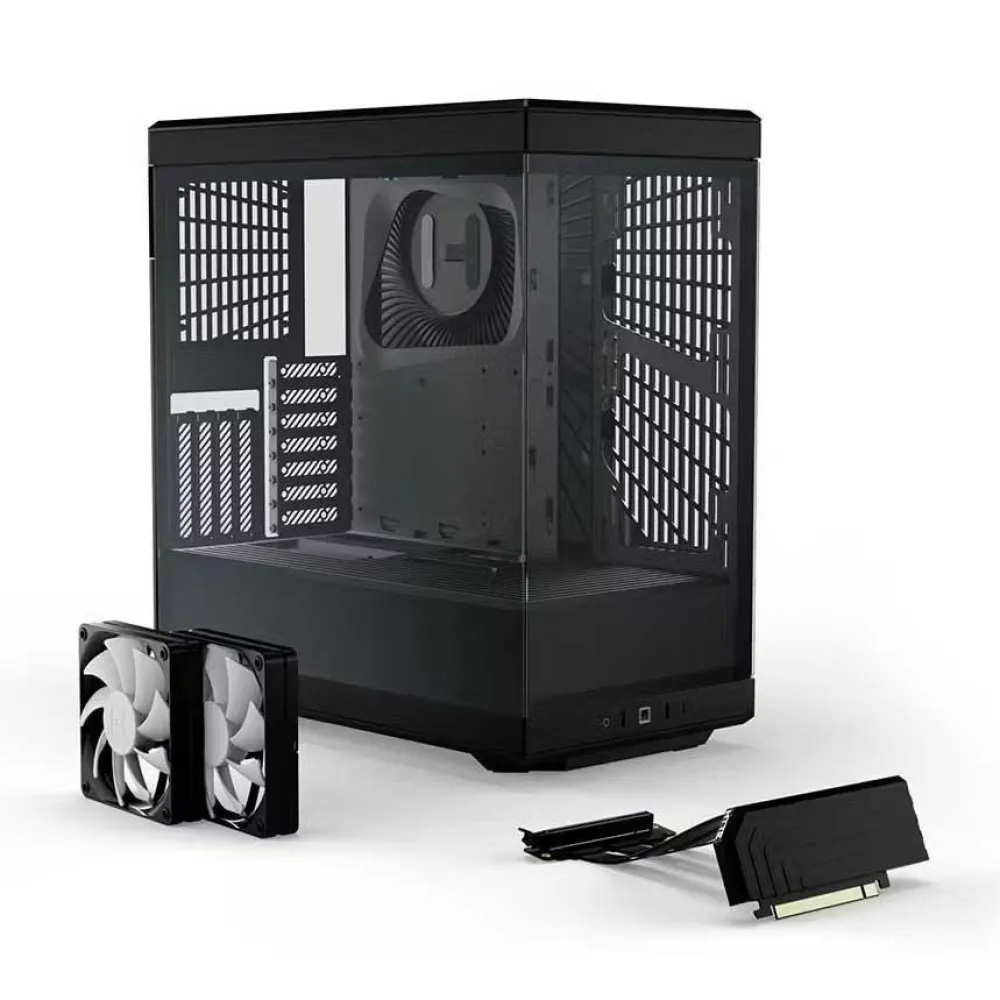 - Y40 øger GPU-understøttelsen til fulde 4 slots med ekstra luftstrømsplads mellem kantet af kortet og glasset. En indsugningsblæser under PSU-kappen leverer kølig luft opad til GPU´en for yderligere at forbedre kølingen.