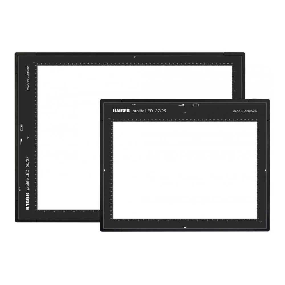 Professionel dagslys lysboks med høje Cri lysdioder. Trinløst dæmpbar. 6 mm T-slot på alle fire sidesektioner til installation i systemer og installationer og til montering af tilbehør. Separat netadapter. Ensartet og farvekorrekt belysning til visning, sortering og fotografisk optagelse (digitalisering) af dias og andre gennemsigtige originaler eller af andre materialer.