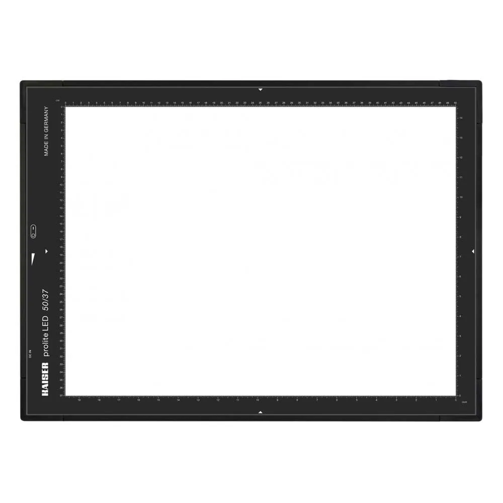 - Akrylglasplade af høj kvalitet med særlig høj transmission og også optimeret lysspredning, cm- og tommeskalaer på det oplyste område.