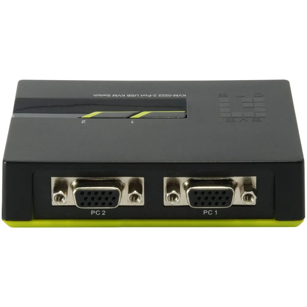 LevelOne KVM-0222 forbinder to computersystemer til et enkelt USB-tastatur, USB-mus og skærm.