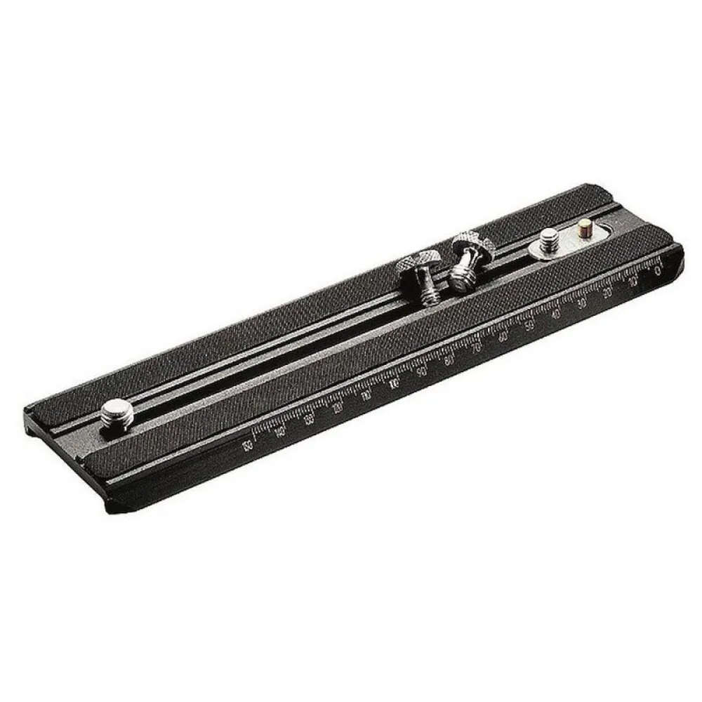Denne lange version af standardpladen giver perfekt balance til videokameraer med usædvanlig vægtfordeling forårsaget af lange teleobjektiver eller tunge batterier. Pladen har en lasergraveret skala, der hjælper med at identificere og registrere den optimale position. For at frigøre det maksimale interval af mulige balancepositioner (140 mm) er VHS-placeringstappen i stand til at glide langs pladens længde. Leveres med 2 x 1/4 'og 2 x 3/8 kamera skruer.