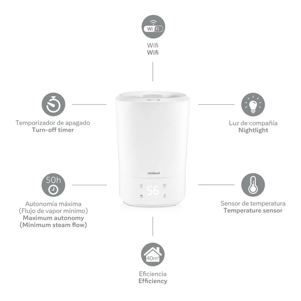 Produktbeskrivelse af Miniland Humitop Connect luftfugter