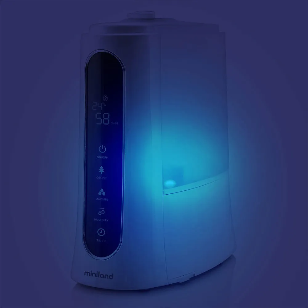 Sørg for, at din baby indånder ren, frisk luft med MINILAND Pure Humitoc. Denne ozonluftfugter eliminerer bakterier og ubehagelige lugte, samtidig med at den opretholder optimal luftfugtighed i rum på op til 40m². Nyd over 50 timers kontinuerlig, støjsvag drift takket være den store 5-liters tank. Skab nemt den perfekte atmosfære med smart fugtighedsprogrammering, en duftspreder og et blidt blåt natlys. Det intuitive touchpanel, tydeligt display, der viser rumtemperatur, og en praktisk fjernbetjening gør det nemt at skabe et sundt, fredeligt miljø for din lille